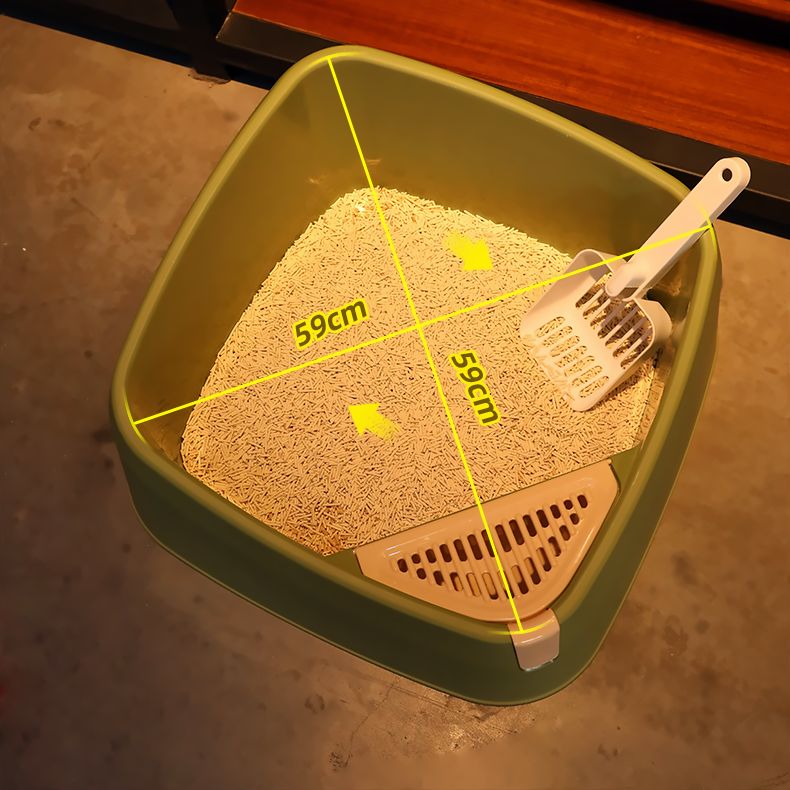 As dimensões de 59 x 59 x 23,4 cm proporcionam espaço amplo e confortável para gatos de todos os tamanhos. Sua altura perfeita permite que até gatos pequenos ou filhotes entrem na caixa com facilidade e segurança.
