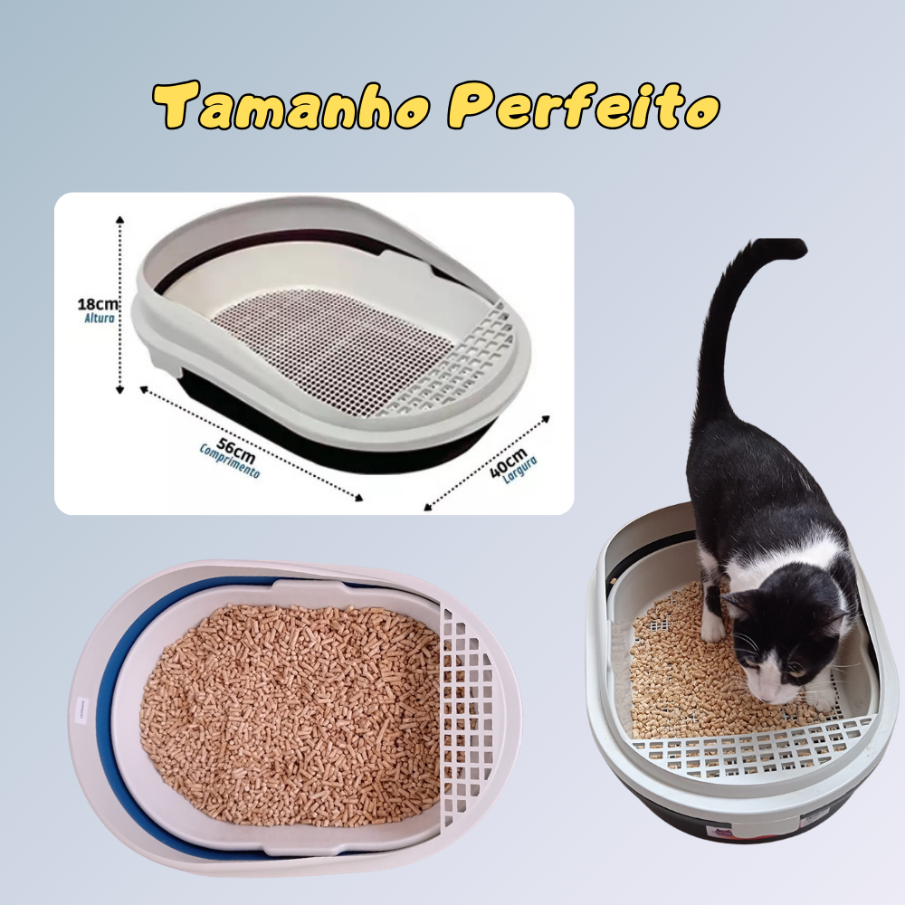 ✔️ Sistema de peneira que facilita a limpeza, evitando o contato direto com os resíduos e mantendo a areia sempre fresca.