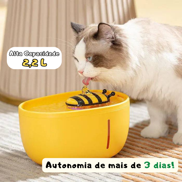 Se você está cansado das mesmas fontes de água chatas que encontra em pet shops, é hora de adquirir nossa Fonte de Água Abelhinha para Gatos. Com ela, seu gato se sentirá incentivado a beber mais água, mantendo-se hidratado e saudável, sem que você precise se preocupar!