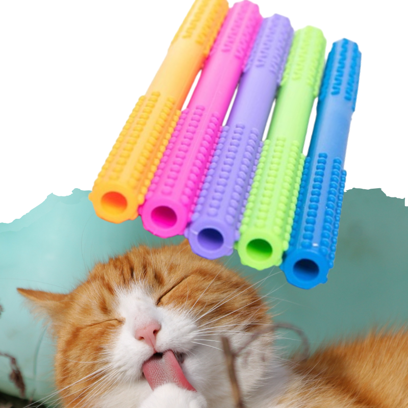 Desenvolvidos com silicone de alta qualidade, esses palitos são projetados para proporcionar uma experiência de escovação divertida e eficaz para o seu gato.